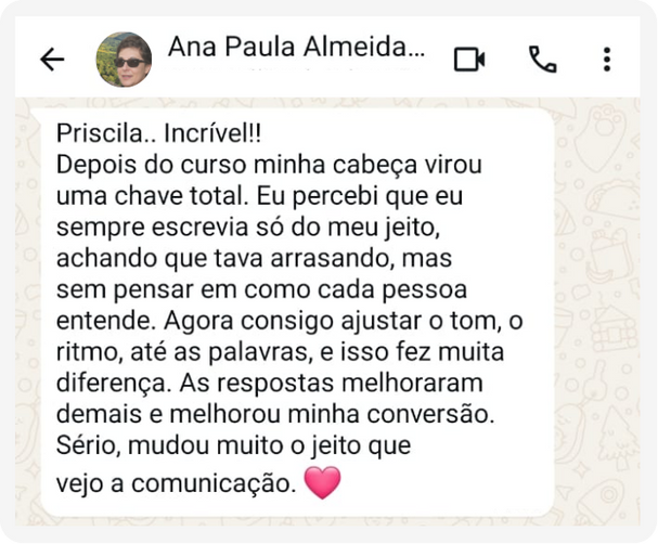 Aqui você amplia a visão e aprende a criar mensagens que falam com todos os estilos de clientes. Sua comunicação deixa de ser genérica e passa a despertar atenção e interesse onde antes havia indiferença.